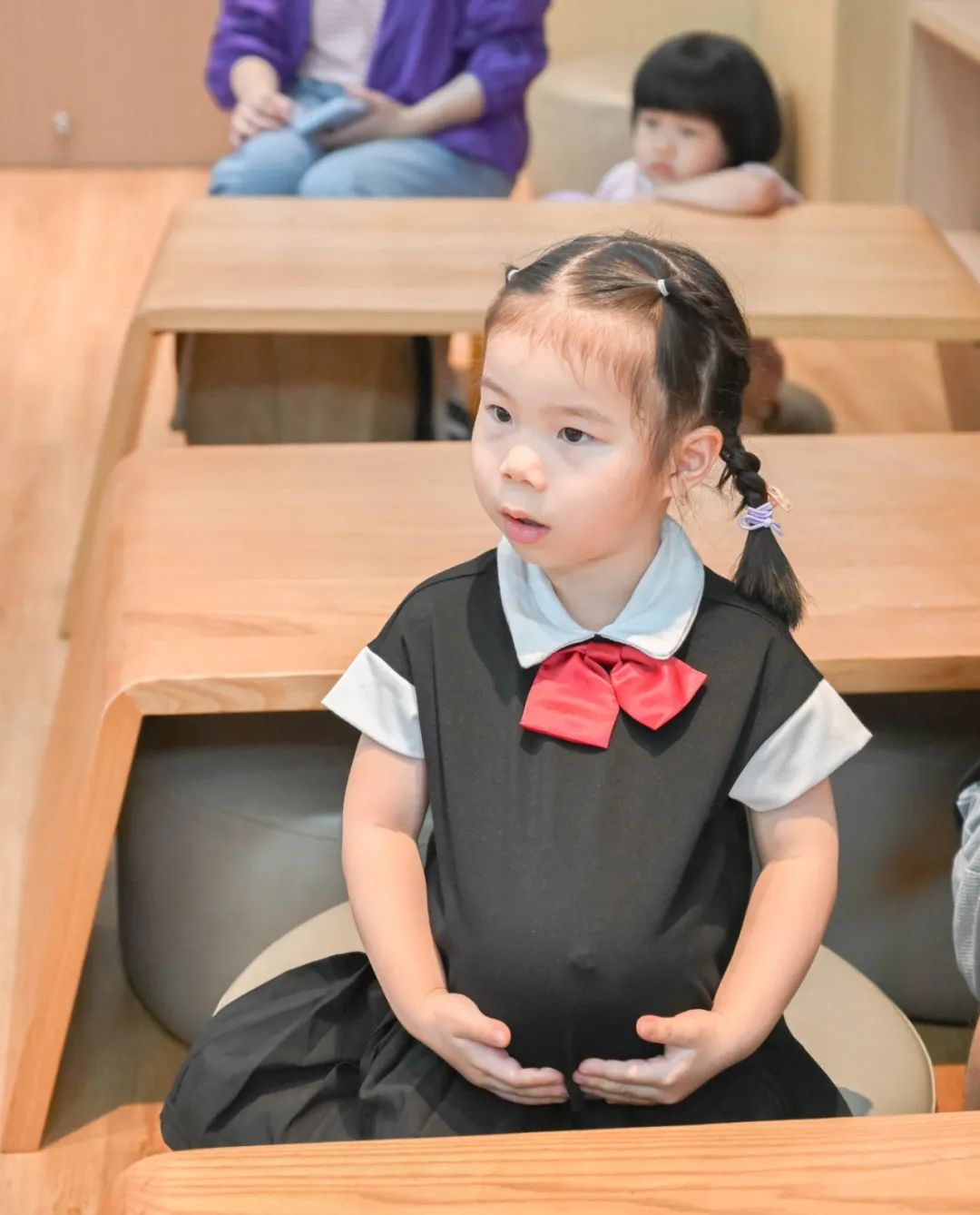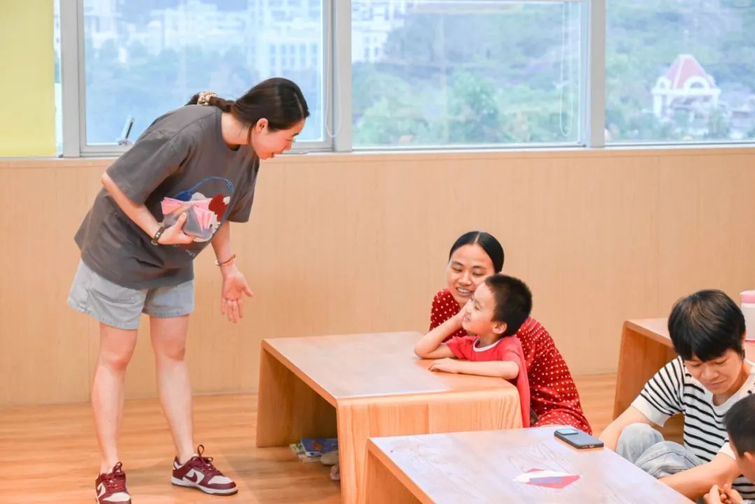 绘本故事结束后,现场爱意满满。孩子们纷纷看向身边的 “仙女妈妈”,主动表达爱意。