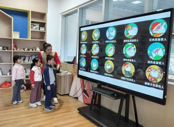 紧接着,宝贝们全程眼神发亮,跟着故事节奏时而紧张、时而欢笑,沉浸式穿梭在圣诞魔法小镇的奇妙世界里!“老师!我发现绘本里的圣诞老人的工作和衣服图案是一样的~” “这个圣诞老人他的鼻子和其他人都不同”课堂上,孩子们的小手举得像森林里的小树苗,一个个充满童趣的发现让老师频频惊喜。围绕绘本,我们设计了层层递进的互动问题,孩子们不仅积极抢答,还主动分享自己的独特见解,让绘本阅读变得更有深度。热烈的互动中,宝贝们不仅感受到了圣诞的温暖与美好,更悄悄 get 了 “分享让快乐翻倍” 的小道理,对“圣诞老人的责任:爱与分享” 有了超真切的理解~